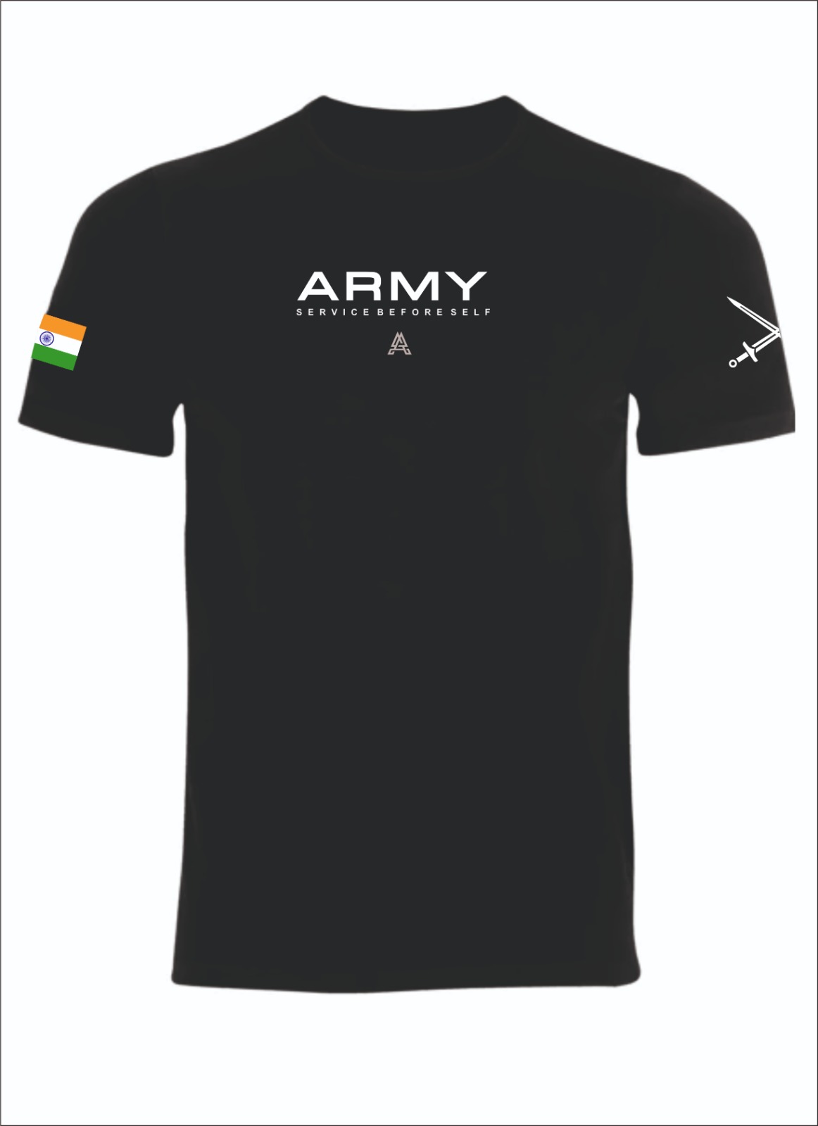 Featuring a bold “ARMY – Service Before Self” print on the chest along with the Indian flag on the sleeve and a crossed swords insignia on the other sleeve, this t-shirt delivers a strong and professional military look. The durable print ensures long-lasting design even after multiple washes.