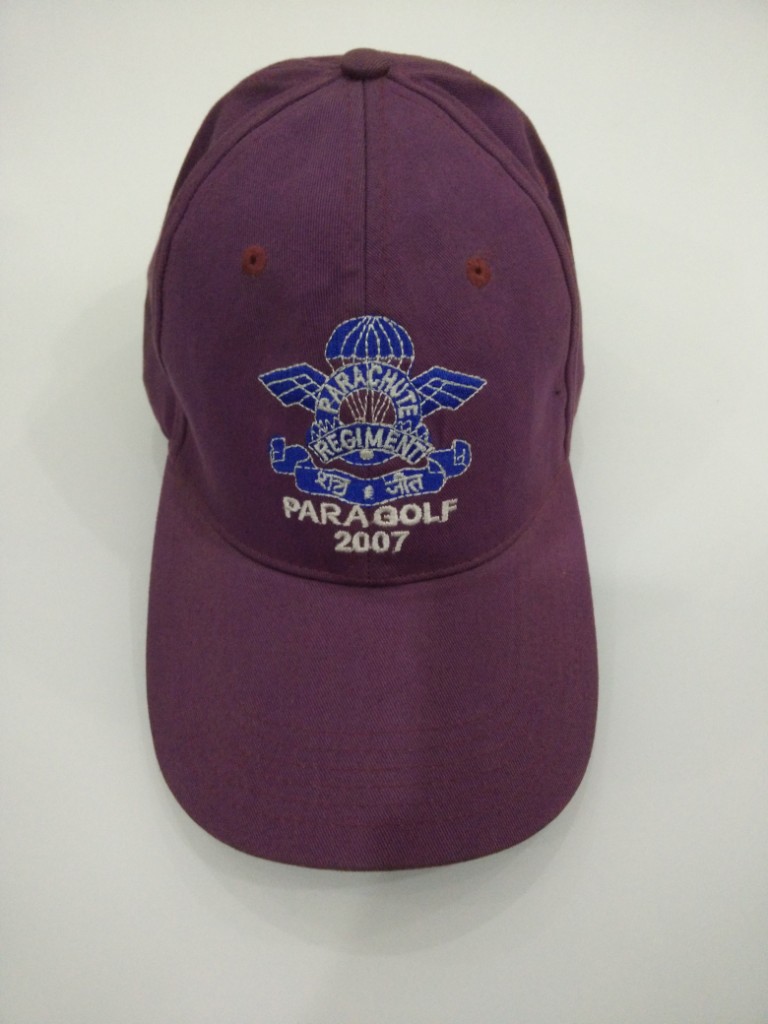 The cap features a detailed embroidered Parachute Regiment logo on the front along with “PARAGOLF 2007” text, giving it a distinctive and premium appearance. The rich maroon color adds a classic and professional touch, making it stand out while maintaining a uniform look.